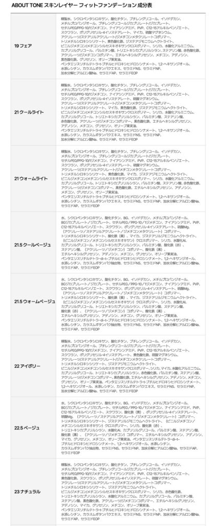 〈ABOUT TONE〉スキンレイヤーフィットファンデーション 成分