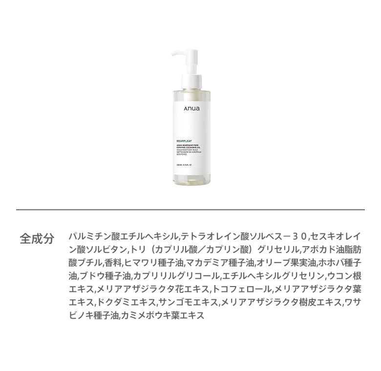 〈Anua〉ドクダミポアコントロールクレンジングオイル 成分