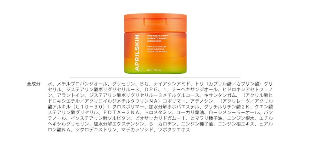 〈APRILSKIN〉カロテンIPMP ブレミッシュセラムパックパッド 成分
