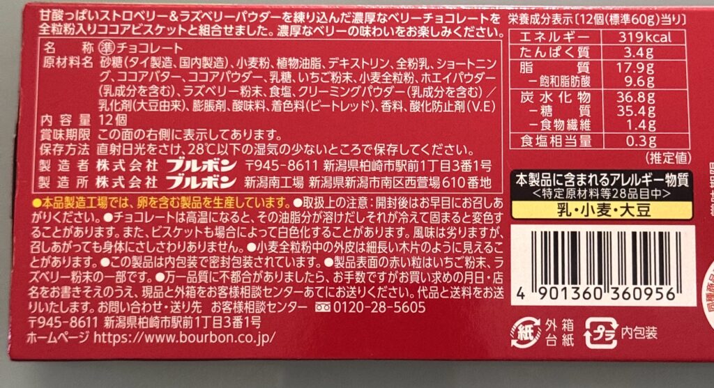 〈ブルボン〉アルフォートミニチョコレート 濃ベリー 原材料名・栄養成分表示
