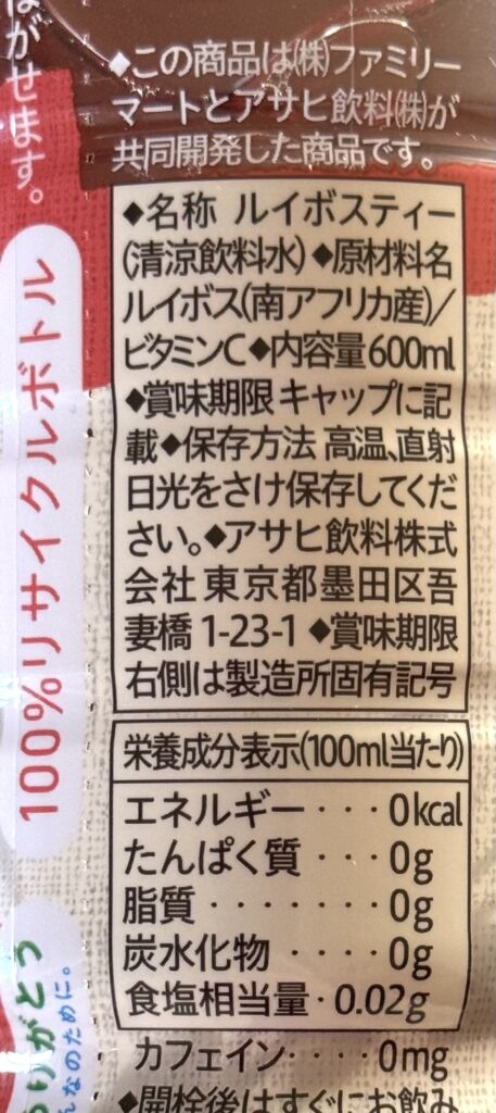 〈Family Mart〉Afternoon Tea監修 ルイボスティー 原材料名・栄養成分表示