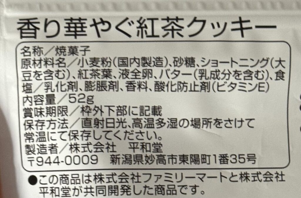 〈Family Mart〉香り華やぐ紅茶クッキー 原材料名・栄養成分表示