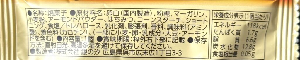 〈銀の汐〉黄金のフィナンシェ 原材料名・栄養成分表示