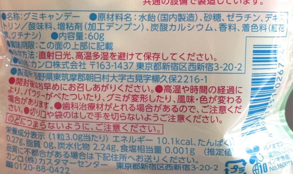 〈Kanro〉カンデミーニャ コネコネこねこ 原材料名・栄養成分表示
