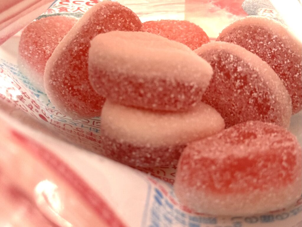 ピーチの味が甘酸っぱくて、食感はもちっとしていておいしいです。