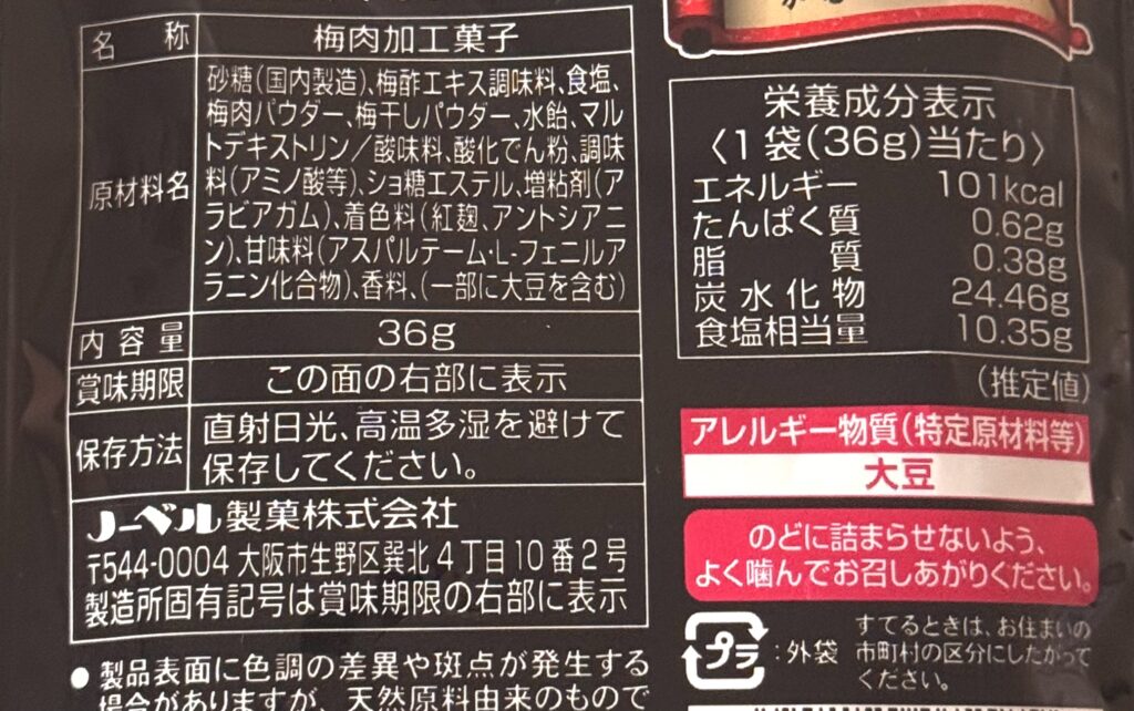 コンビニエンスストアにて、NOBEL(ノーベル)メガ男梅 粒」を購入しました。