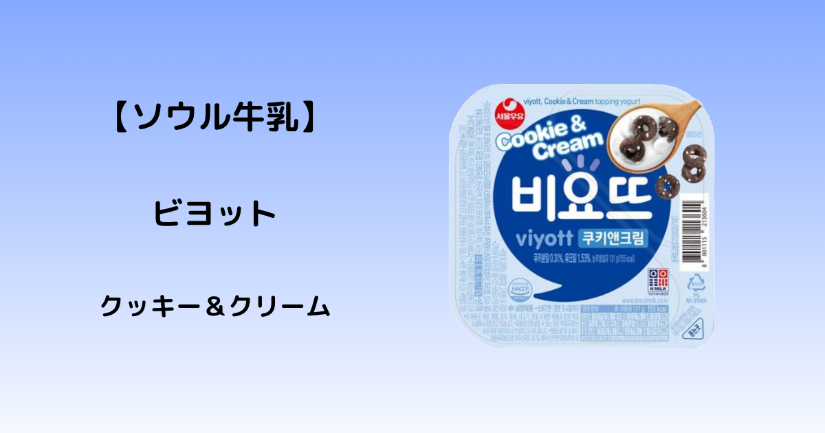 韓国にて、ソウル牛乳「ビヨット クッキー&クリーム」を購入しました。