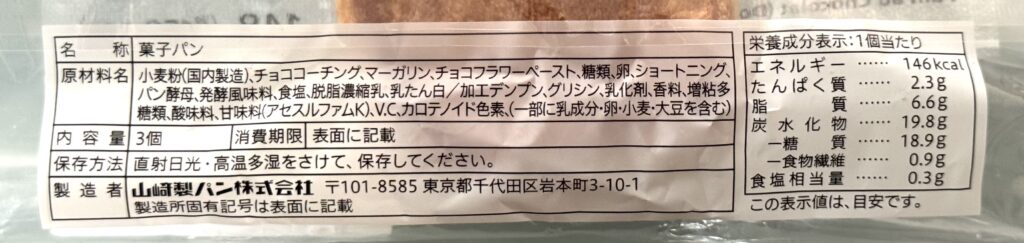 〈セブンイレブン〉パン・オ・ショコラダブルチョコ 原材料名・栄養成分表示