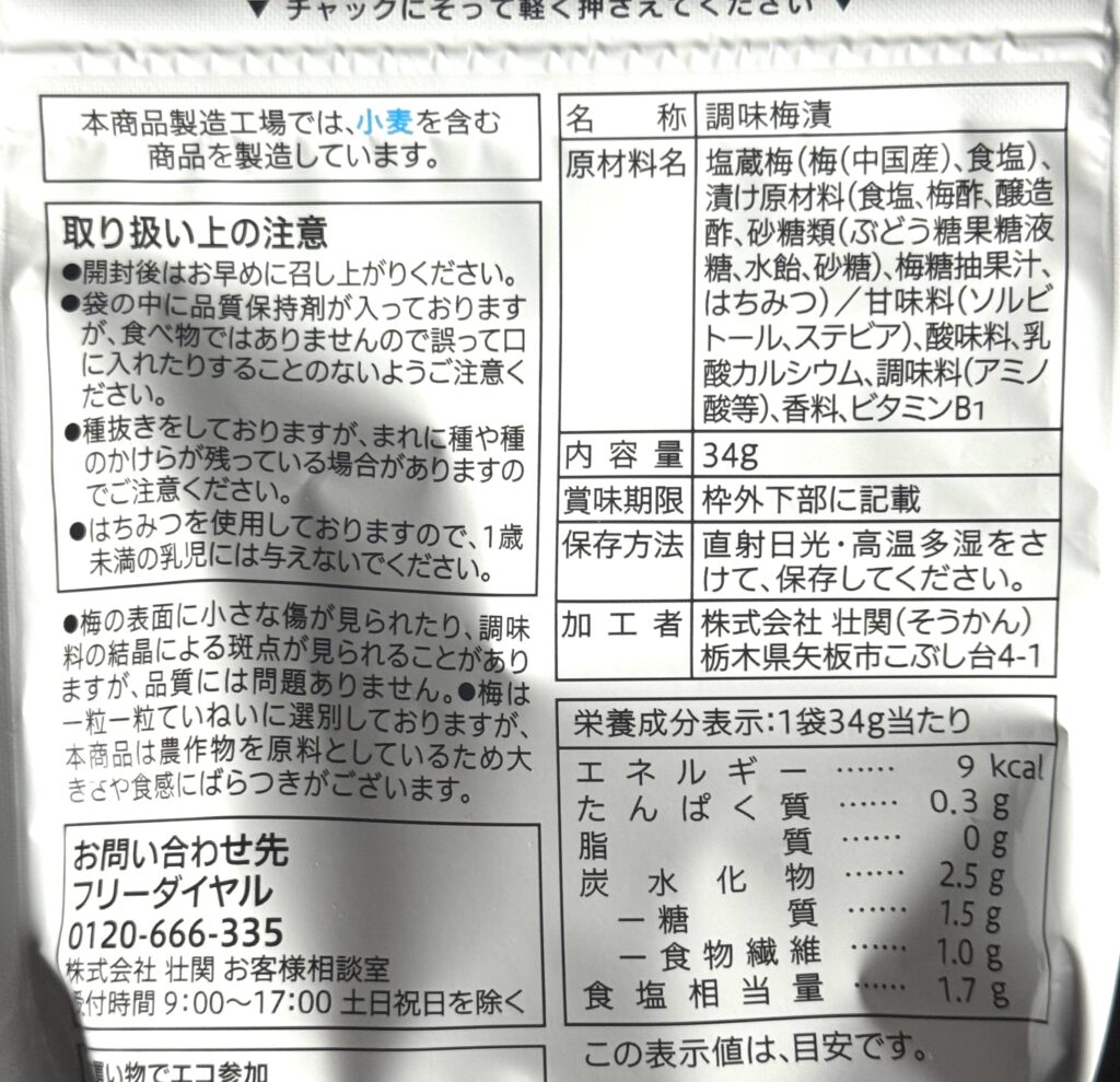 〈セブンイレブン〉甘酸っぱい種抜きカリカリ梅 原材料名・栄養成分表示