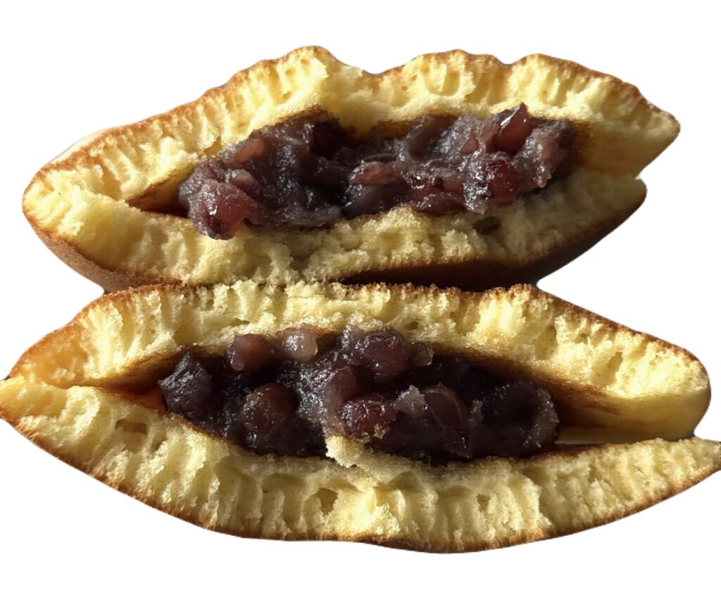 ふんわりとした生地に瑞々しく甘さ控えめの北海道産小豆をたっぷりと挟まれているどら焼きです。