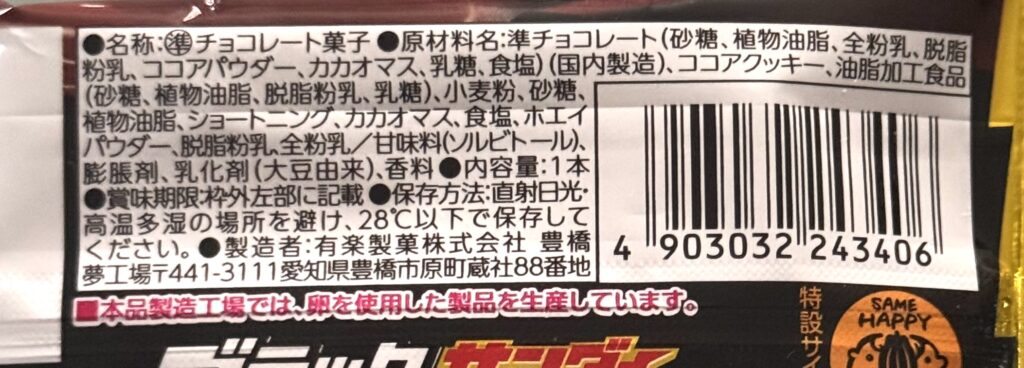 〈ユーラク〉ブラックサンダー 原材料名・栄養成分表示